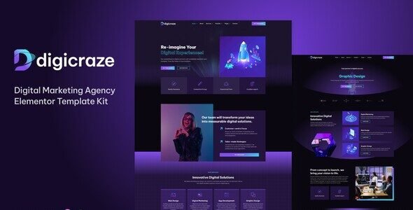 Digicraze – Digital Marketing Agency Elementor Pro Template Kit is a bold and modern template kit designed for SEO experts, marketing agencies, creative studios, and digital strategists. Built exclusively for Elementor Pro, Digicraze offers a sleek, high-converting design tailored to promote services, showcase results, and build client trust.